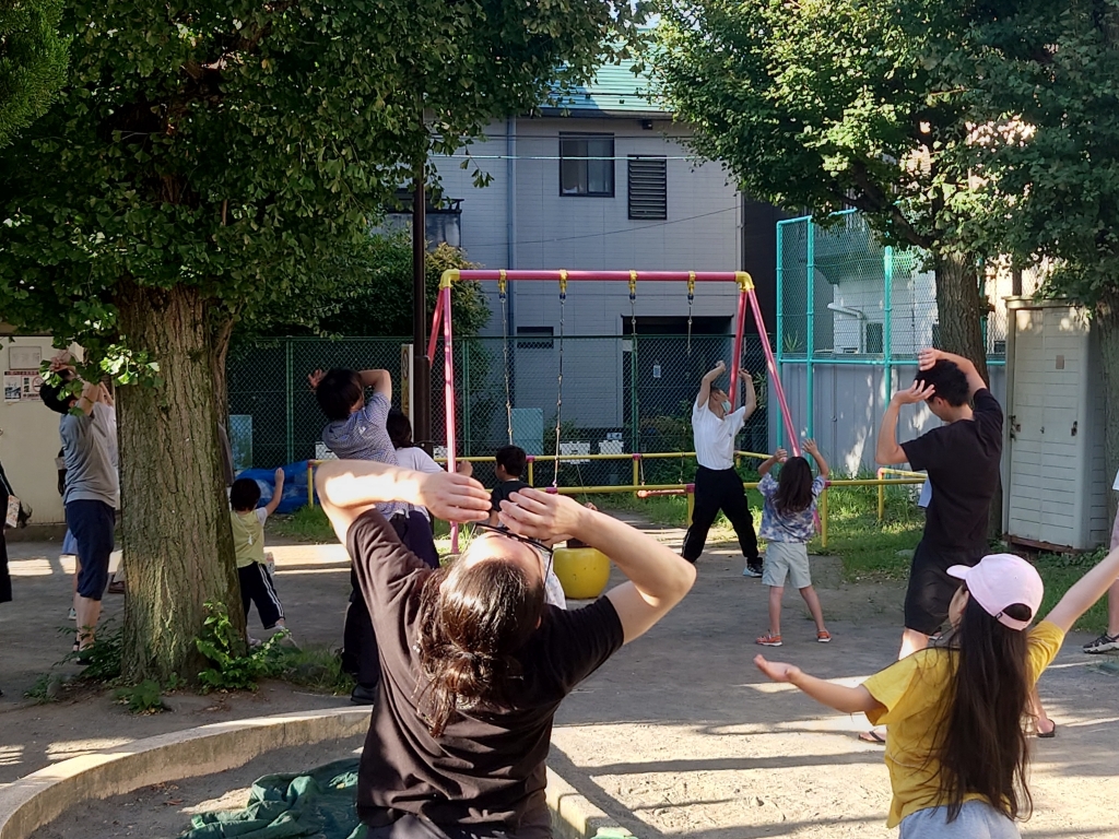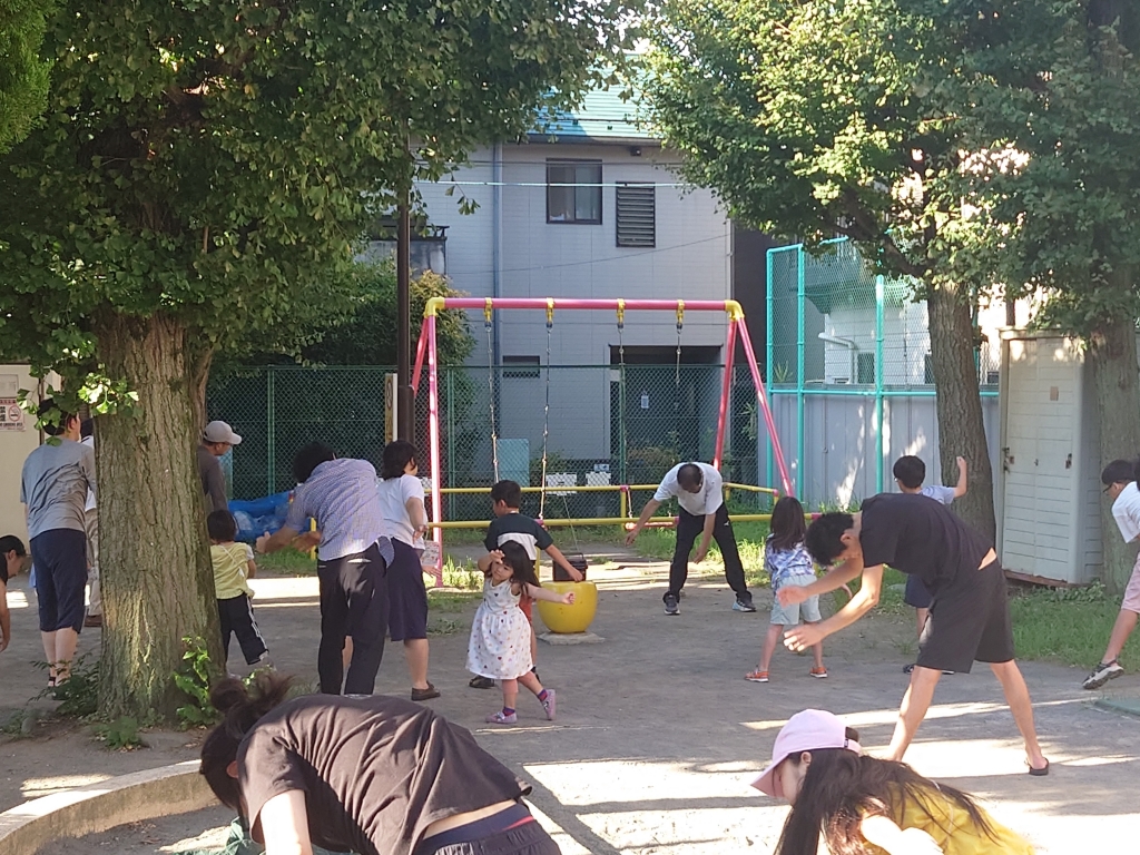7月22日火曜日から29日火曜日、若松町町会のラジオ体操の手伝いをしました。毎年の町会の夏の行事であり、会場は若松児童遊園を使用します。6時30分にラジオから元気な声が出る。ラジオ体操の歌に合わせてみなさん足踏み、このころには20名ほどの親子が眠い目をこすって揃います。第一体操が始まる時には、みなさん、へたくそな私の方を見ています。3年ほど前から一人で前で踊っているのでだいぶ慣れましたが、毎日緊張します。間違えないように手足を動かし、私の視線は半分、うわの空です。この公園、狭いですが、木陰があります。みなさん、いつもの所に行って元気に踊っています。ただ、毎年いらしていた年輩のご婦人の方が今年は一度も来ませんでした。いつもより暑く、長い8日間が終わりに近づく。最終日の第二体操が終了し、一礼した時は笑顔、笑顔。毎日判を押していただいたカードを町会の役員さんに差し出し、プレゼントを頂きました。来年も威張れるかな…。もう、70近くなっている。