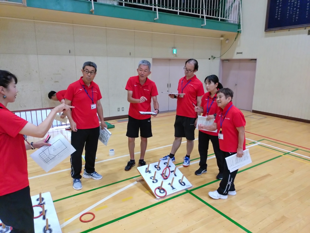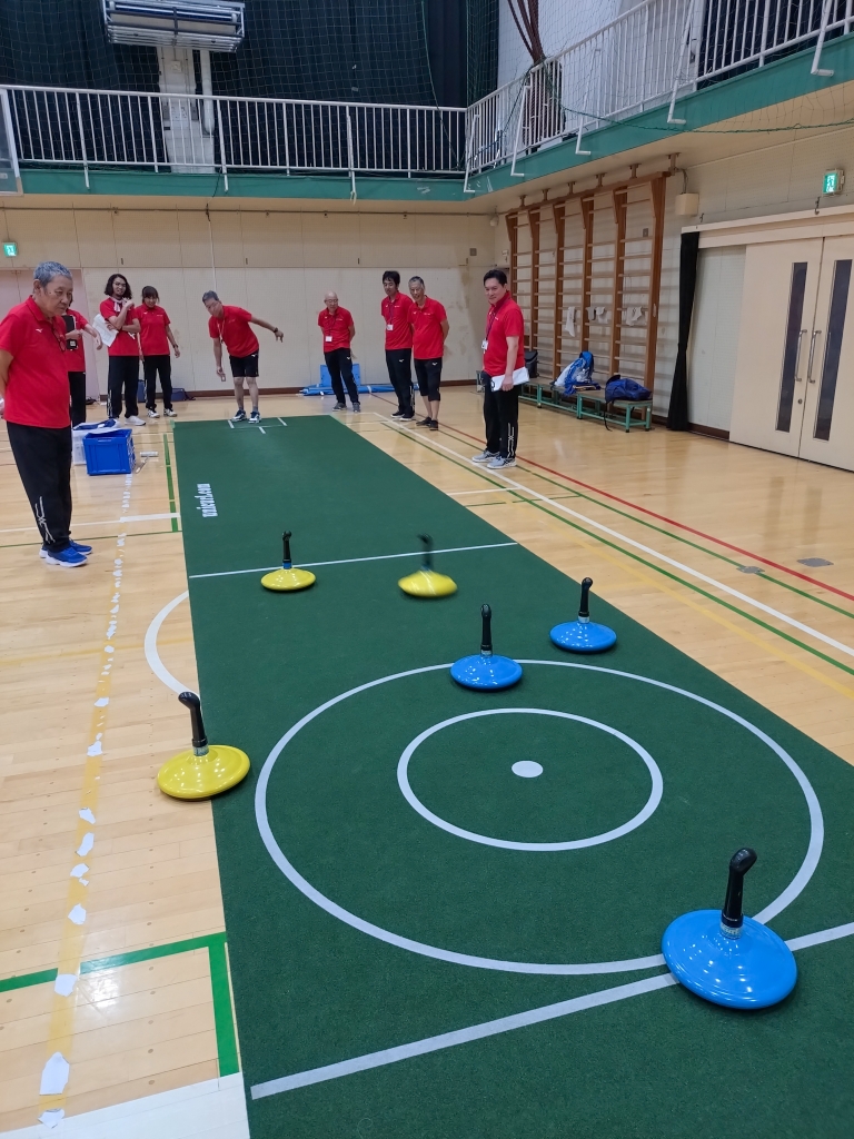 Aチームは輪投げコート2面、Bチームはユニカールのコート1面を作成し、事業部のリーダーによる説明がありました。チーム内で審判になったり選手になったりし、試合をしながら研修を行いました。コミスポルールブック(2024年版)が配布され、みんなで文章でも確認しながら細部まで確認しました。
