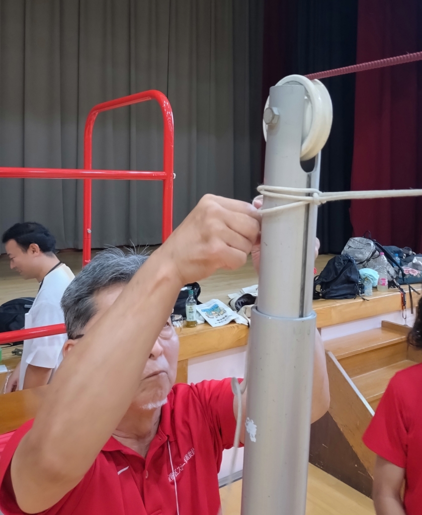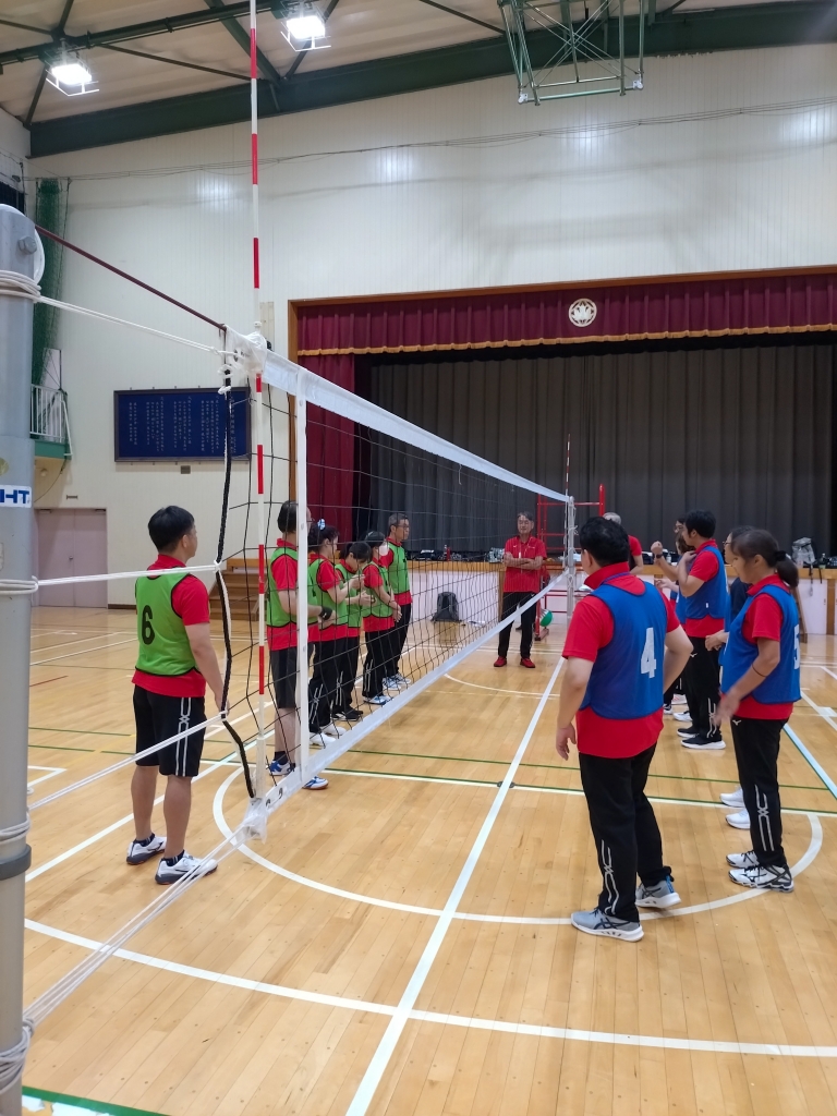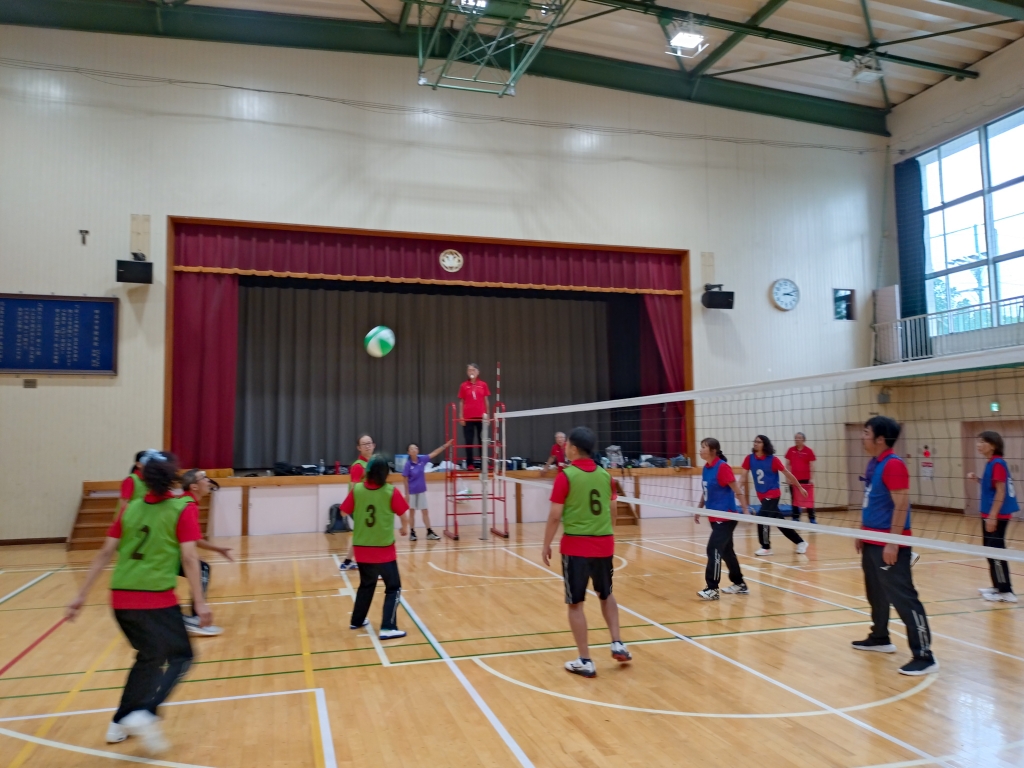 次にビーチボールバレーのコートをみんなで作成しました。ビーチボールバレーは、コロナ禍で行われる事が少なくなった種目の1つです。Aチーム、Bチーム、主審、副審、ラインズマンの役割に分かれ、本番の試合さながらの接戦を行いました。