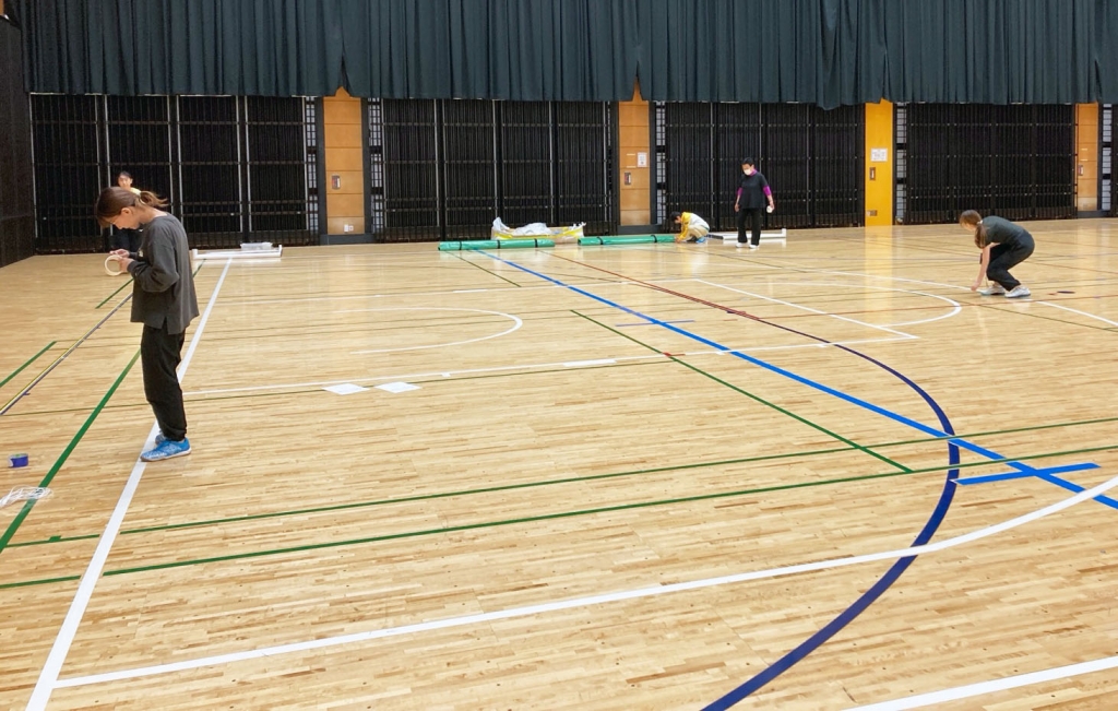 2025年10月12日土曜スポレク2025でのゴールボール体験イベント準備にスポーツ推進約10名程度参加しました。