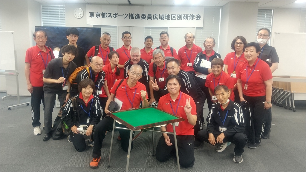 第一ブロック研修会(今回の主管は千代田区。他に港区、中央区、新宿区の4区が参画する研修)が7月6日、日曜日、12時〜16時15分まで千代田区役所本庁舎4階会議室、16時30分以降は10階食堂で行われました。今回の研修は健康マージャン。スポーツとは縁遠いものですが、4区合わせて100名を超すスポーツ推進委員、行政職員が参加しました。新宿区は男性19名、女性6名、合計25名。麻雀は女性にとってはあまり興味が湧かないものです。私の学生(大学生)のころは、講義をさぼり、雀荘に入り浸っている者、放課後、講義のスキマ、などの時間、あるい友人のアパートでの徹夜マージャンと男子学生はほとんどの者がやっていました。麻雀は飲む、打つ、買うのひとつであり、われわれ貧乏学生でも点1,点3、とかで賭けてやっていた記憶があります。私自身、ヘタで符を数えられず、社会人になってからはほとんど興味を持たず、今日に至っています。
