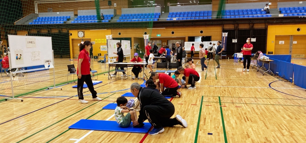 血圧、握力、開眼片足立ち、上体起こし、立位体前屈、20mシャトルランと総合評価が体力測定