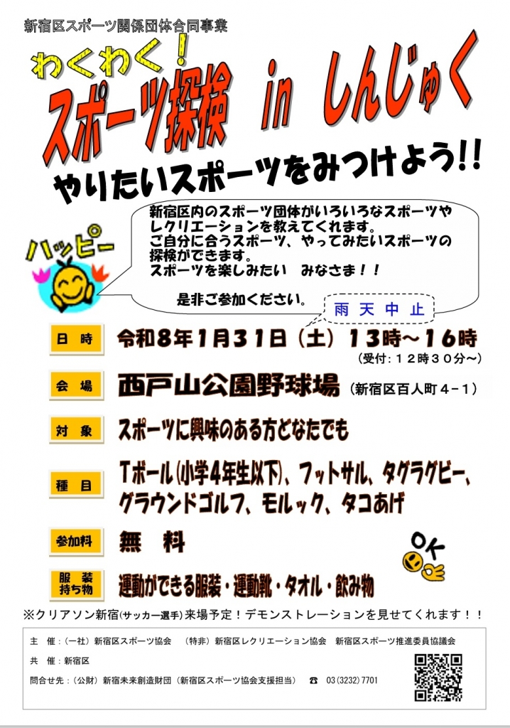 主催:(一社)新宿スポーツ協会、(特非)新宿区レクリエーション協会、
